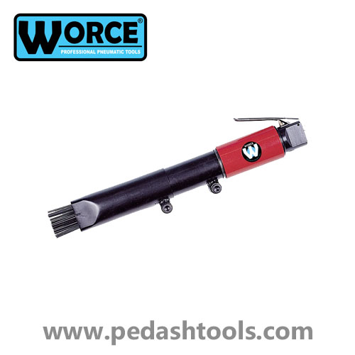 نام دستگاه : چکش گلزن بادی سایز 3 میلی متری اصل تایوان ، مدل دستگاه : WX-2100NS ، تعداد ضربه در دقیقه : 3.000 BPM ، سایز سوزن : 2 یا 3 میلی متر ( mm ) ، ورودی هوای دستگاه : 1/4 ، شناسه انداره شلنگ دستگاه : 3.8 اینچ Inch > معادل 10 میلی متر ( mm ) ، میانگین مصرف هوا : ( 4 CFM ) معادل > 113 لیتر / دقیقه ( Liter / Minutes ) ، طول دستگاه : 13/16 – 14 اینچ ( Inch ) معادل > 376 میلی متر ( mm ) ، وزن دستگاه : 5.7 ( Lbs ) معادل 2.6 کیلوگرم ( Kg ) ، محصولی از کشور تایوان ، طراحی شده با ابعادی فوق العاده  ، جنس بدنه دستگاه : فلزی ، کاربرد دستگاه : در انواع مشاغل صنعتی جهت استفاده طولانی مدت و مصارف سنگین ، مجهز به قفل کن ماشه جهت جلوگیری از روشن شدن ناگهانی دستگاه و پیشگیری از خطرات احتمالی و عواقب آن ، کاملا حرفه ای و مقاوم در حین کار و در مقابل ضربات ، بسیار خوش دست با طراحی و رنگ منحصر به فرد و زیبا ، مارک دستگاه : ورث ( WORCE ) بسیار بروز و با کیفیت